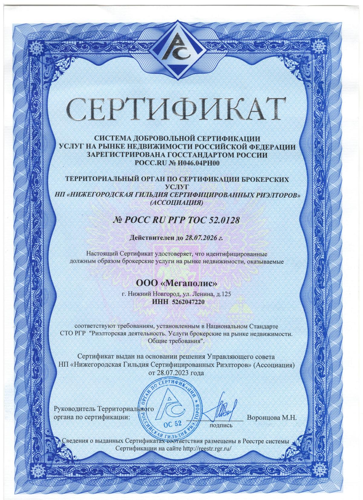 Являемся членом Нижегородской Гильдии Сертифицированных Риэлторов, а так же Российской Гильдия Риэлторов.